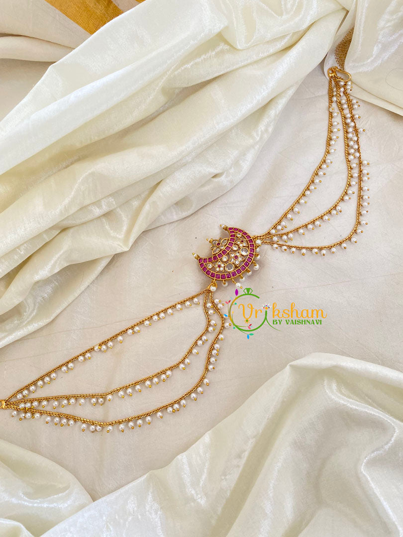 Premium AD Stone Jada Bun Billai with Maatil -Bridal Bun Jada Billai – Bridal Hair Accessory. Pearl maatil.