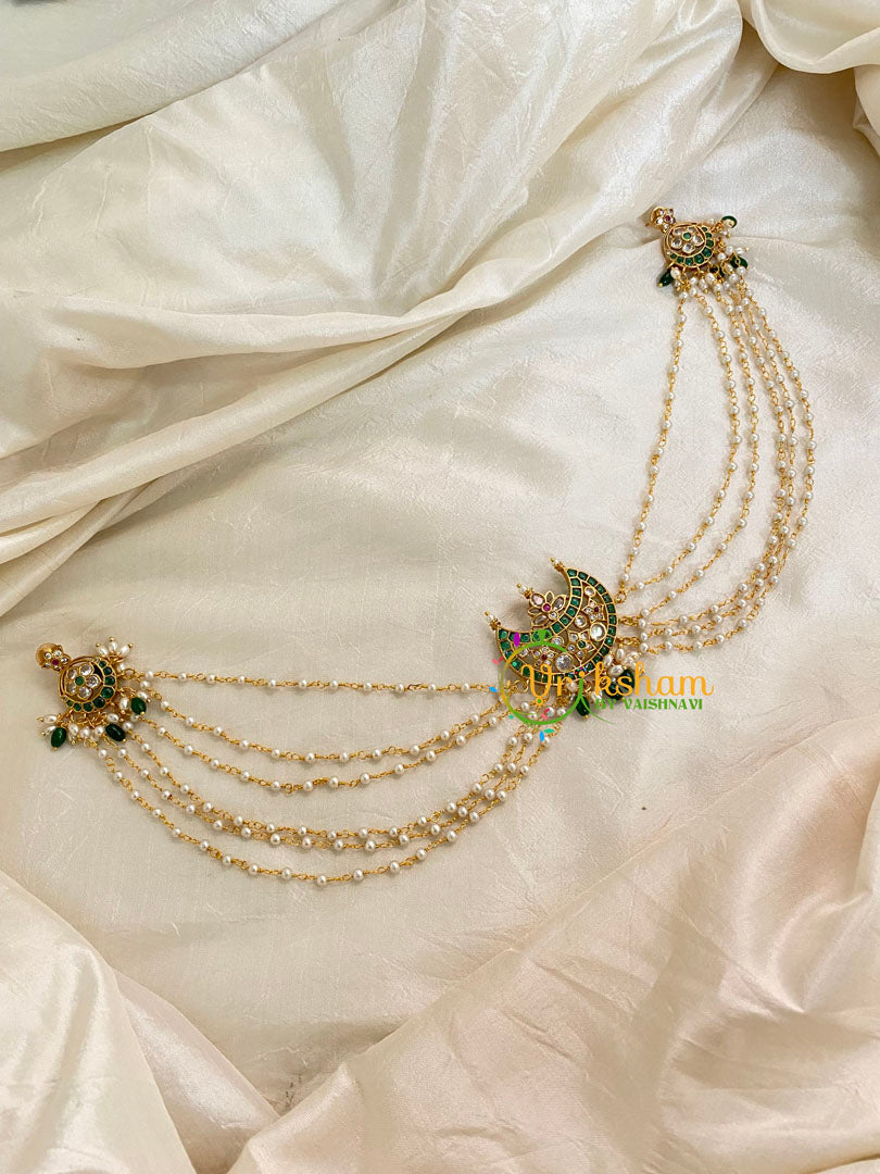 Green Jada Bun Billai with Maatil -Bridal Bun Jada Billai – Bridal Hair Accessory- imitation AD stone set single piece billai; green bead finish.