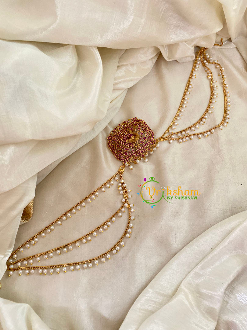 Premium Jada Bun Billai with Maatil -layer of pearl chains -Bridal Bun Jada Billai – Bridal Hair Accessory-  imitation AD stone set single piece billai.