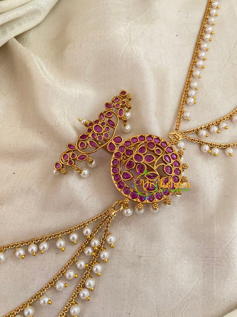 Traditional Jada Bun Billai with Maatil -layer of pearl chains -Bridal Bun Jada Billai – Bridal Hair Accessory- imitation stone set single piece billai.