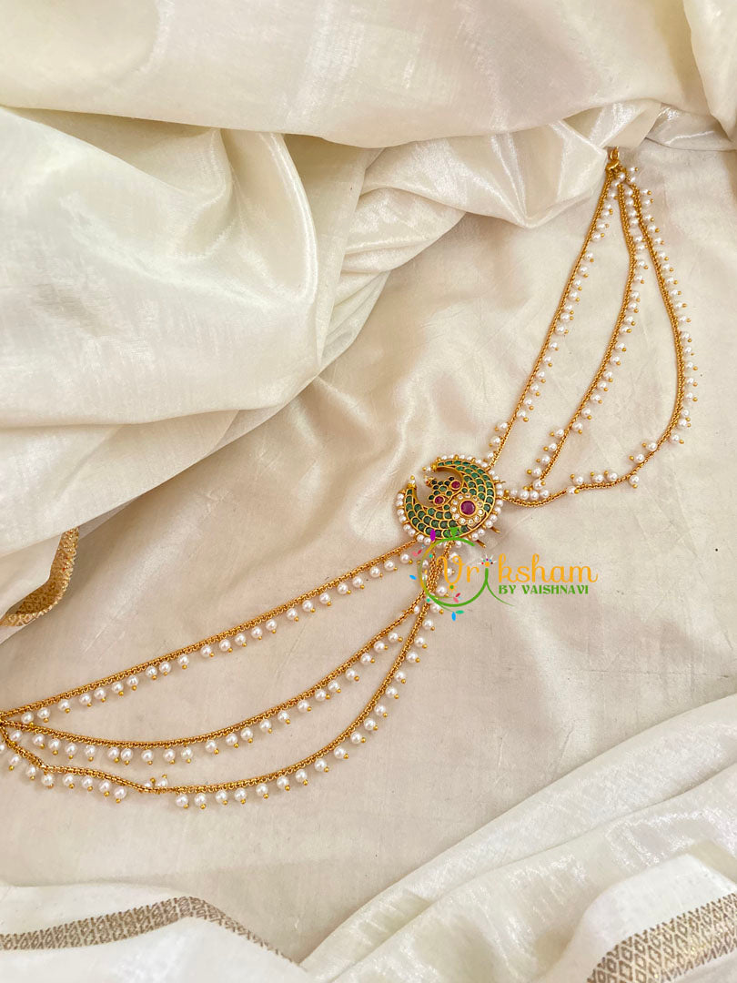 Premium Jada Bun Billai with Maatil -layer of pearl chains -Bridal Bun Jada Billai – Bridal Hair Accessory- imitation AD stone set single piece billai.