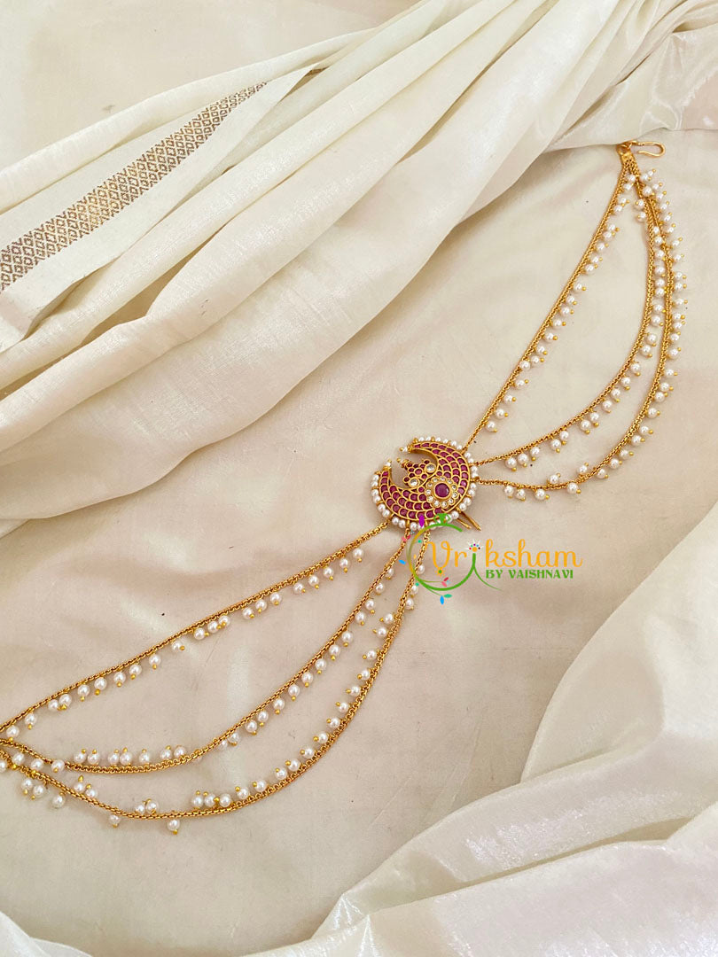 Premium Jada Bun Billai with Maatil -layer of pearl chains -Bridal Bun Jada Billai – Bridal Hair Accessory-  imitation AD stone set single piece billai.