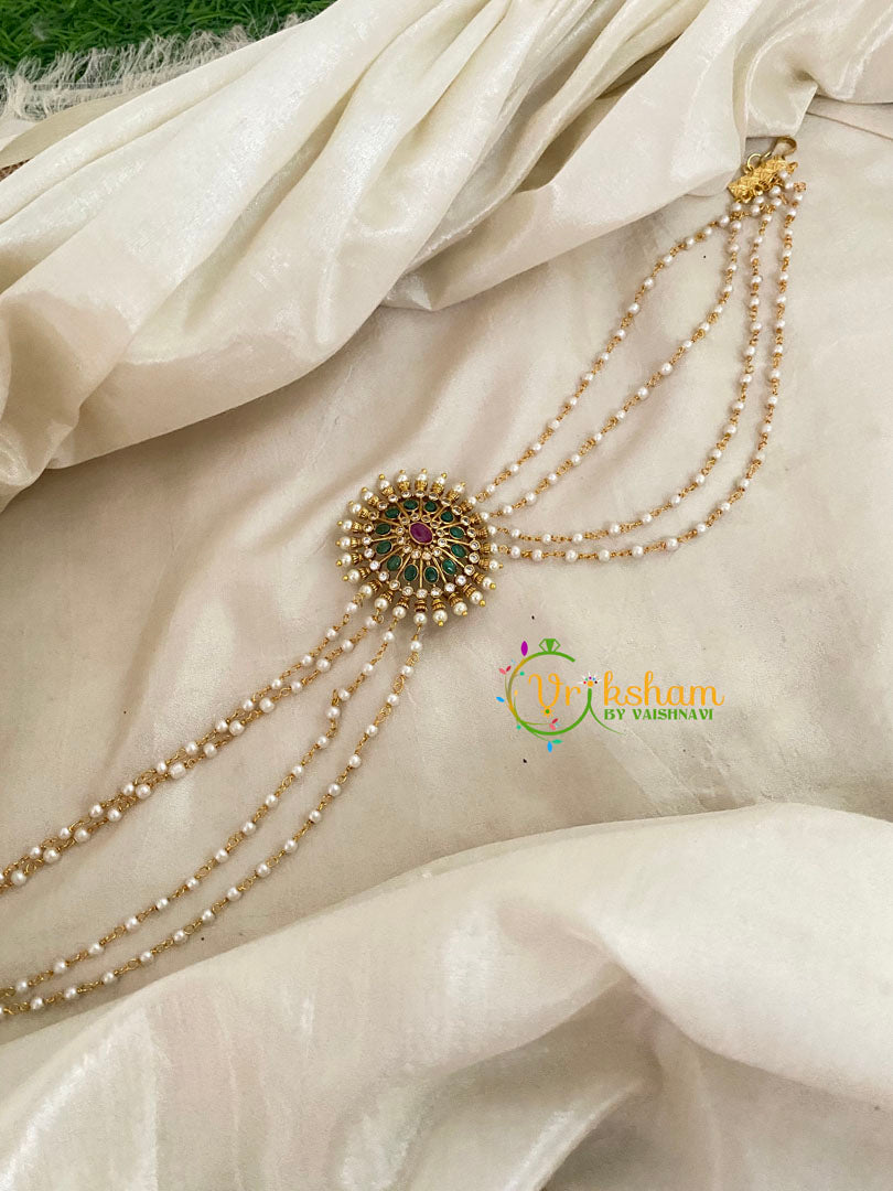 Premium Jada Bun Billai with Maatil -layer of pearl chains -Bridal Bun Jada Billai – Bridal Hair Accessory-  imitation AD stone set single piece billai.