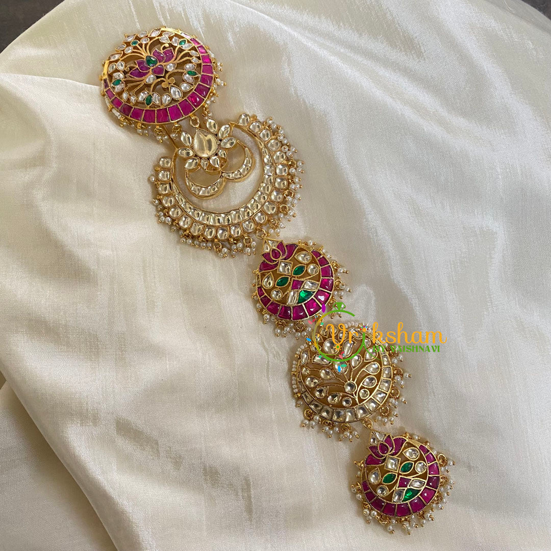 Precious Jadau Kundan Bridal Jada Billai -Hair Accessory-5 pendant bridal hair accessory; Pearl finish.