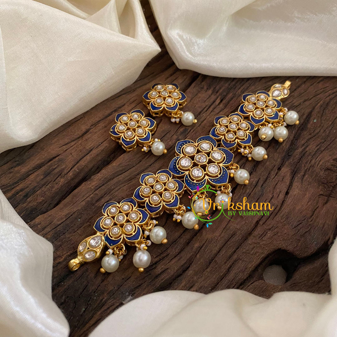 Jadau Kundan High Neck Choker - semi precious kundan stones with jadau work festive wear neckpiece