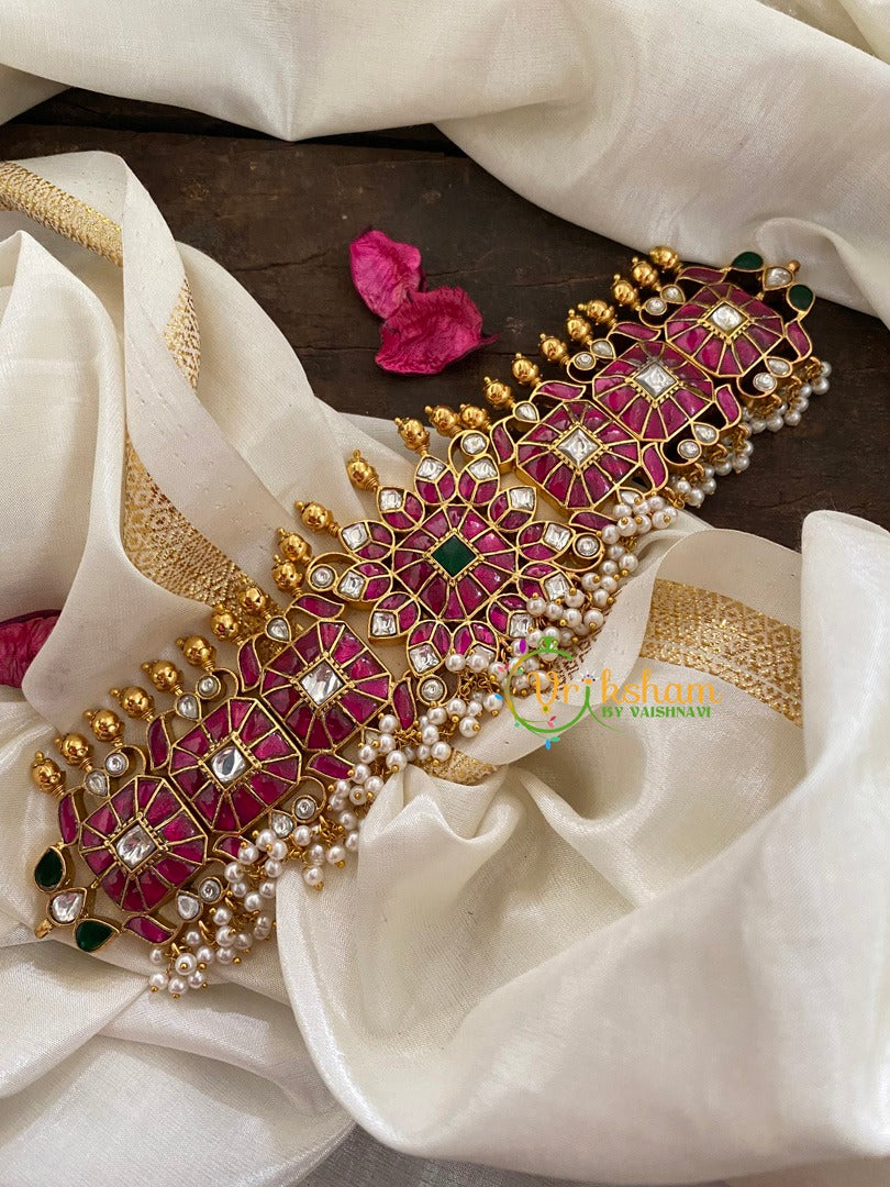 Precious Jadau Kundan High Neck Choker – Premium quality polish precious kundan jadau work;cluster pearl finish.