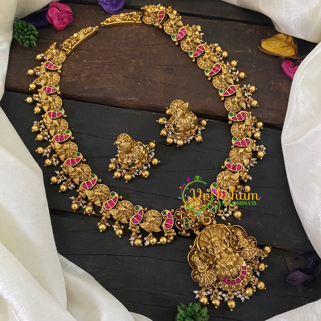 Precious Jadau Kundan Lakshmi Haram - Gold Bead -J1024