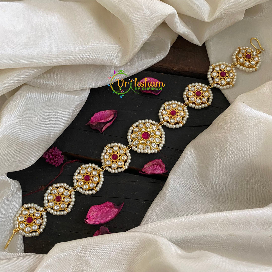 Precious Jadau Kundan Sheeshphool-Hair Accessory- pendant bridal hair accessory; Pearl bead finish.