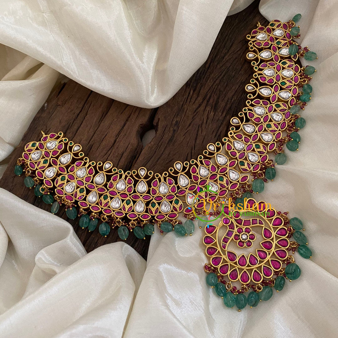 Precious Kundan Short Neckpiece- Premium quality geru polish with precious kundan work bridal and festive jewelery.