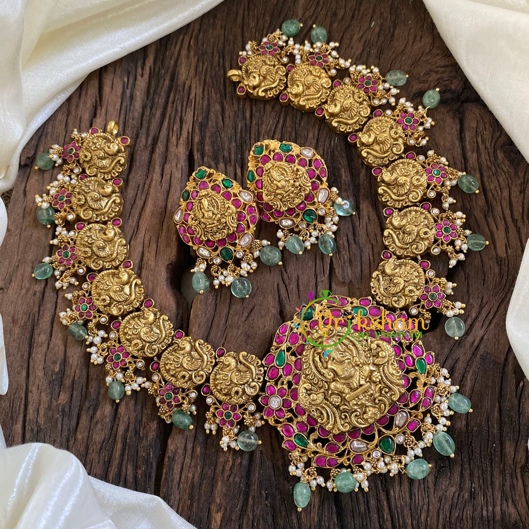 Precious Jadau Kundan Ganesh Temple Short Neckpiece- Premium quality geru polish with precious kundan work bridal and festive jewelery.
