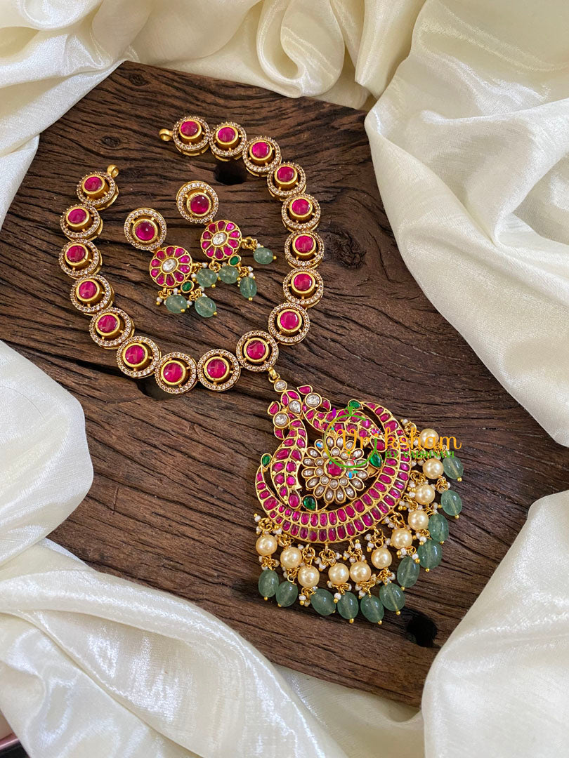 Precious Jadau Kundan Short Neckpiece-Pastel Green Beads -J1625