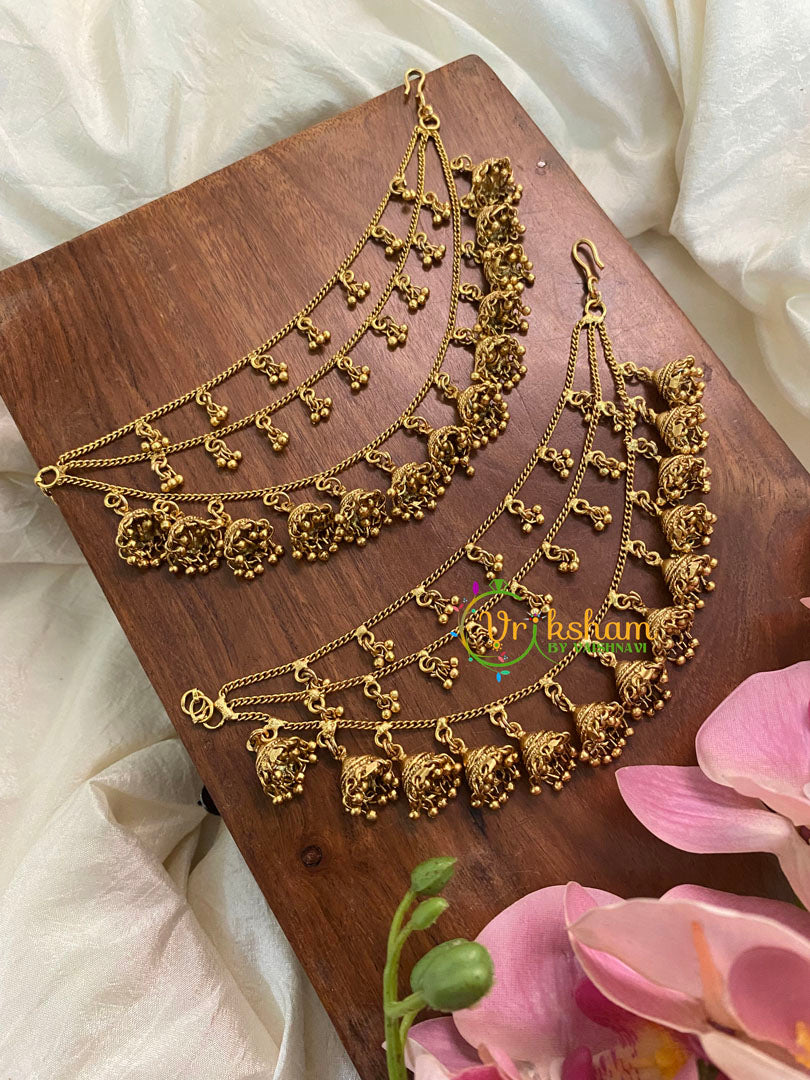 Jhumka ear chain -ghungroo finish -3 layered - bottom layer jhumka one with ghungroo finish.