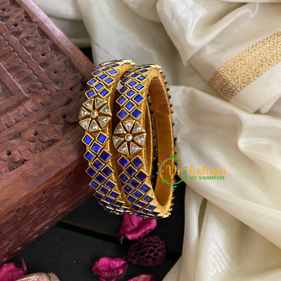 Kada Kundan Bangle -Blue Star Silk Thread Bangles- kundan stone festive bangles , Comes as 2 bangles only.