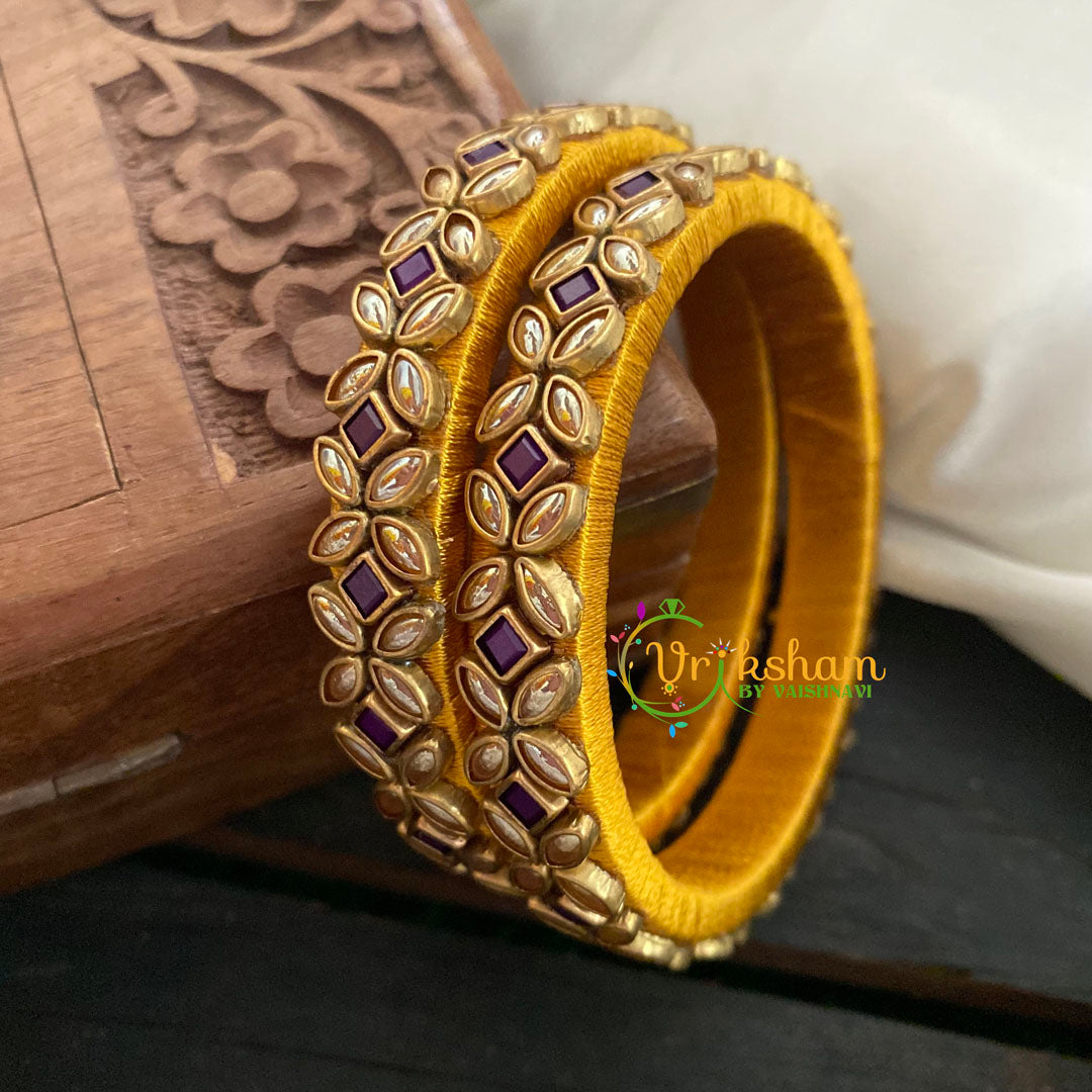 Kada Kundan Bangle-Flower Purple- Sandal Silk Thread Bangles- kundan stone festive bangles , Comes as 2 bangles only.