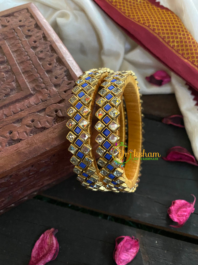 Kada Kundan Bangle -Blue Dice Silk Thread Bangles- kundan stone festive bangles , Comes as 2 bangles only.