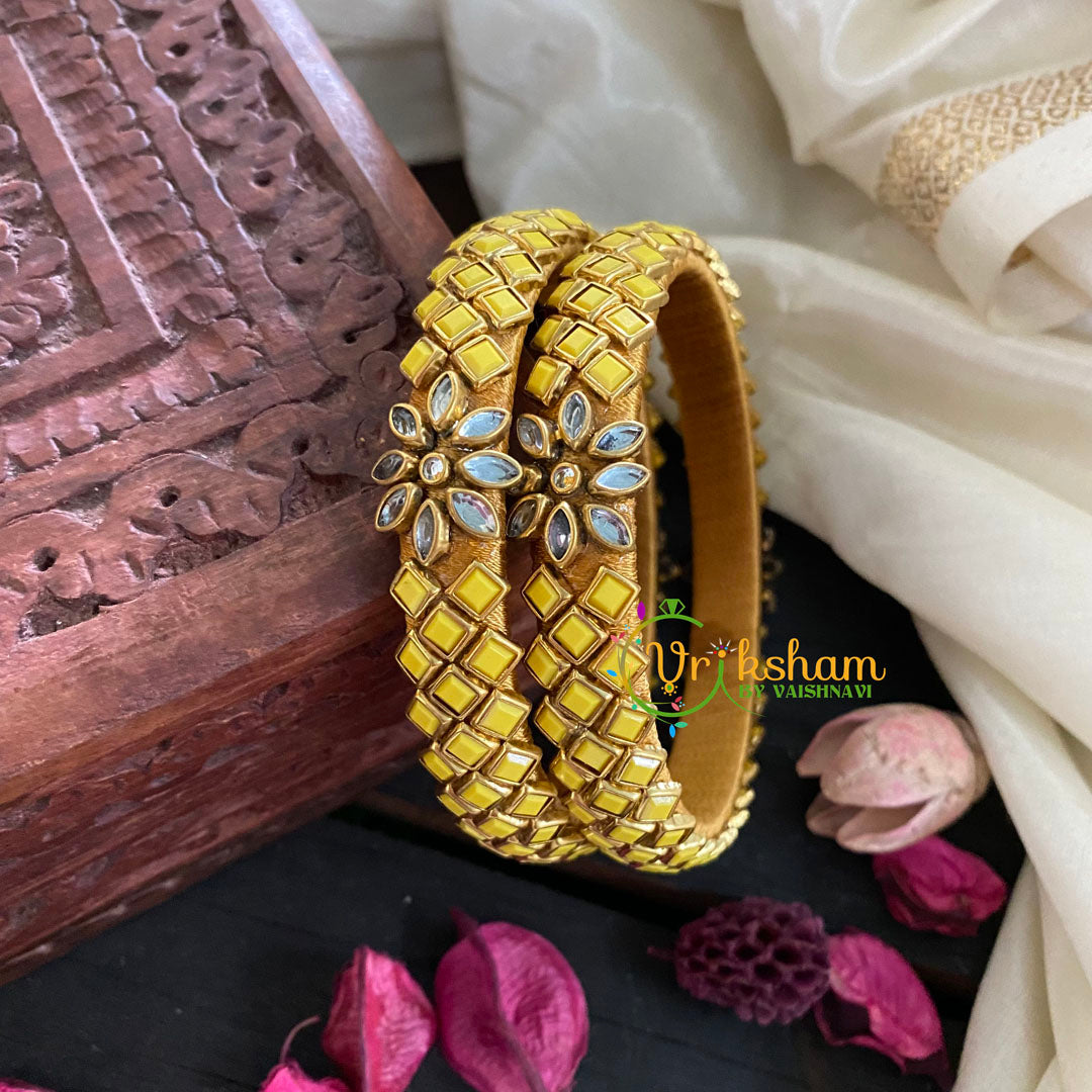 Kada Kundan Bangle -Yellow Matt Silk Thread Bangles- kundan stone festive bangles , Comes as 2 bangles only.