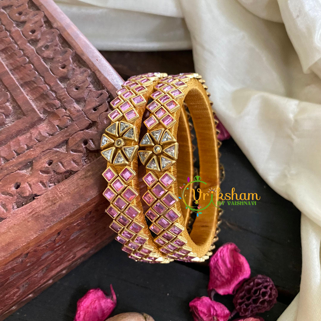 Kada Kundan Bangle -Baby Pink Star Silk Thread Bangles- kundan stone festive bangles , Comes as 2 bangles only.