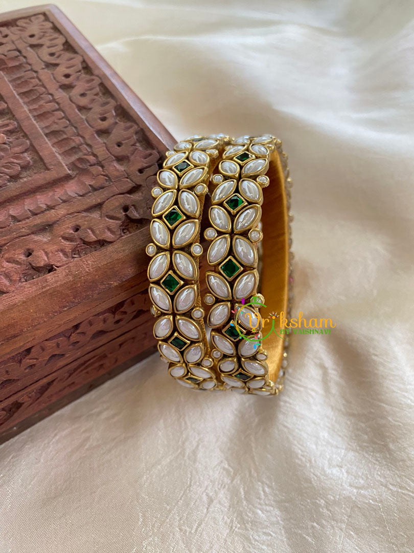 Kada Kundan Bangle -Matt White Green-Flower-G6273