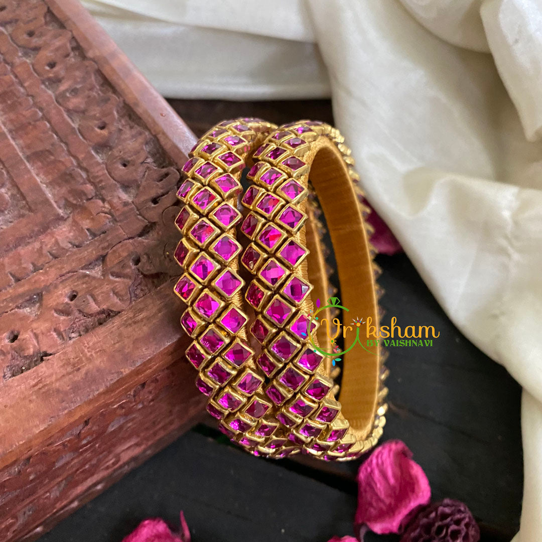 Kada Kundan Bangle -Hot Pink Ring Silk Thread Bangles- kundan stone festive bangles , Comes as 2 bangles only.