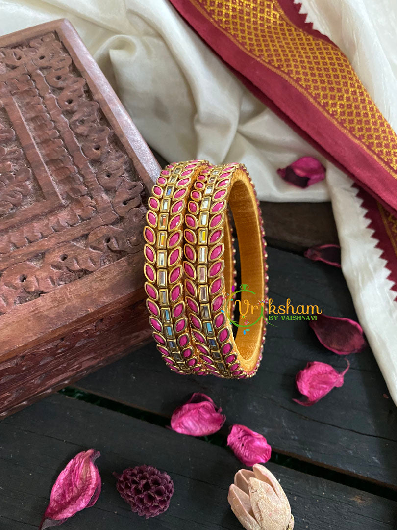 Kada Kundan Bangle -Pink Matt Silk Thread Bangles- kundan stone festive bangles , Comes as 2 bangles only.