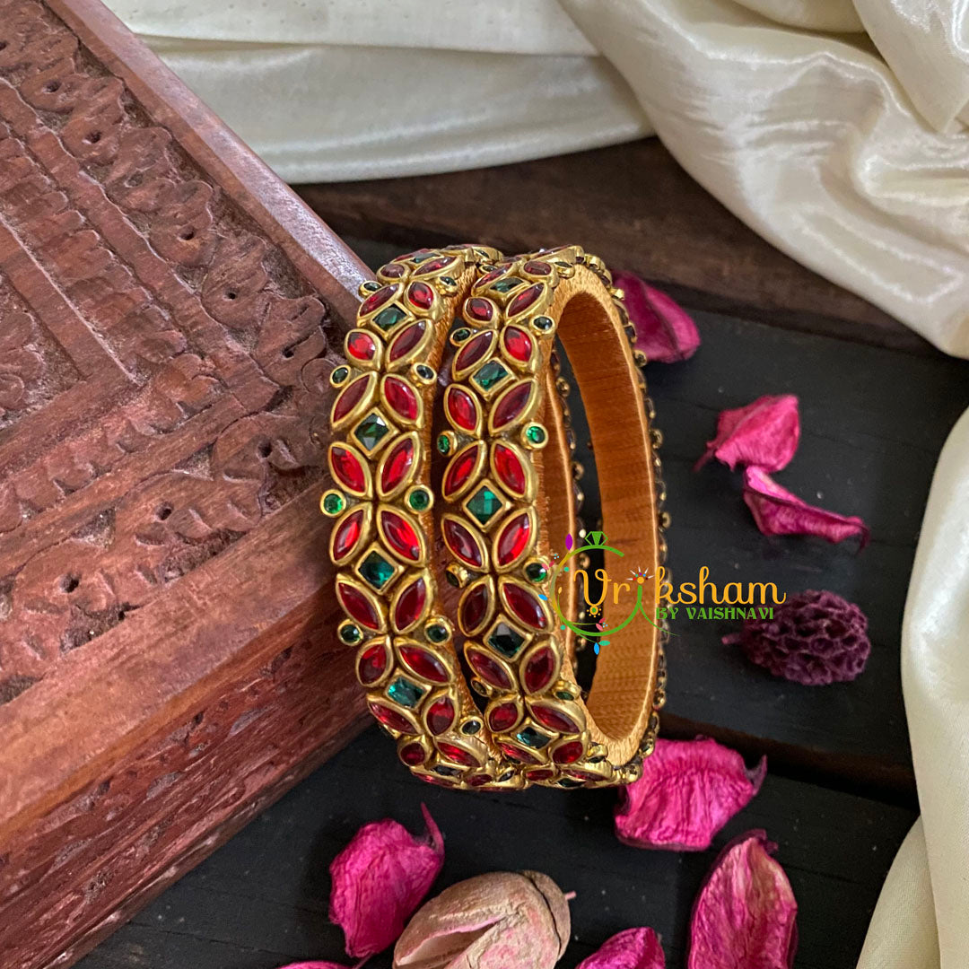 Kada Kundan Bangle -Red Green Silk Thread Bangles- kundan stone festive bangles , Comes as 2 bangles only.