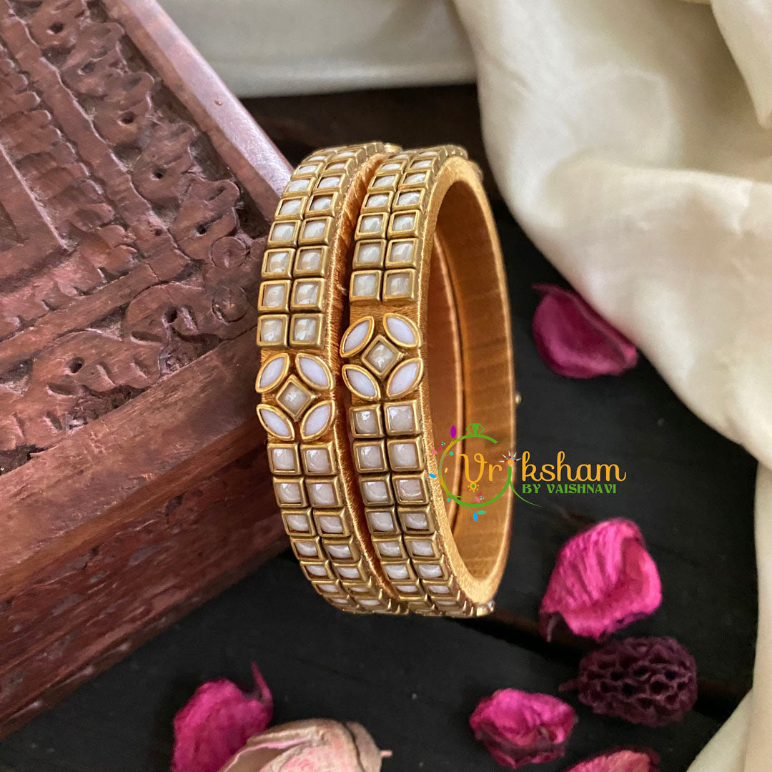 Kada Kundan Bangle -White Bar Matt Silk Thread Bangles- kundan stone festive bangles , Comes as 2 bangles only.