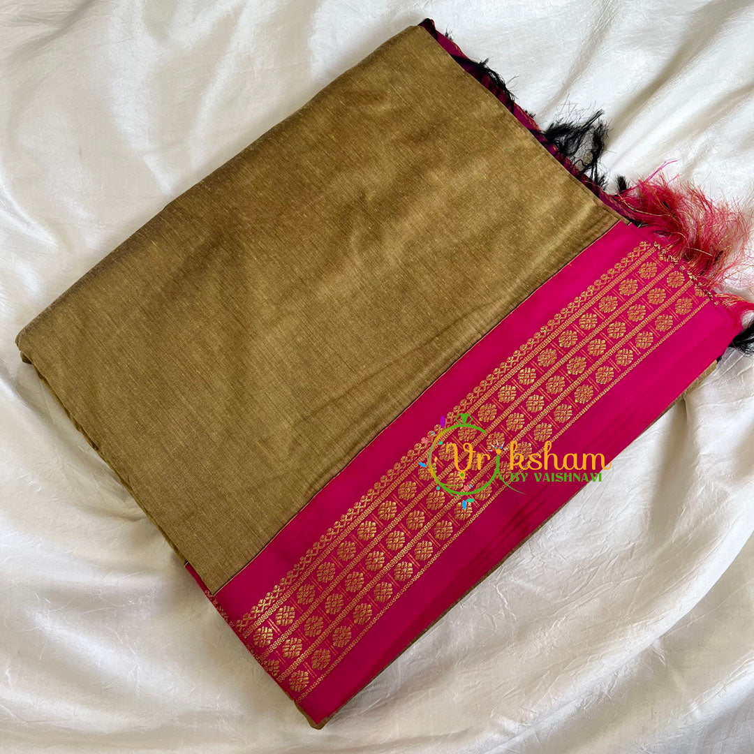 Mustard Saree with Pink red Border -Kalyani Cotton Saree - comes with Blouse attached. Contrast border saree. Poly mix cotton.
