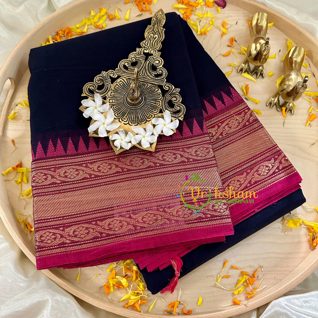 Deep Aubergine with Pink Border Kanchi Cotton Saree -Handloom -Drape elegance - a mix of traditional and contemporary saree suitable for both daily wear and festive occasion, purest cotton hand loomed just for you.