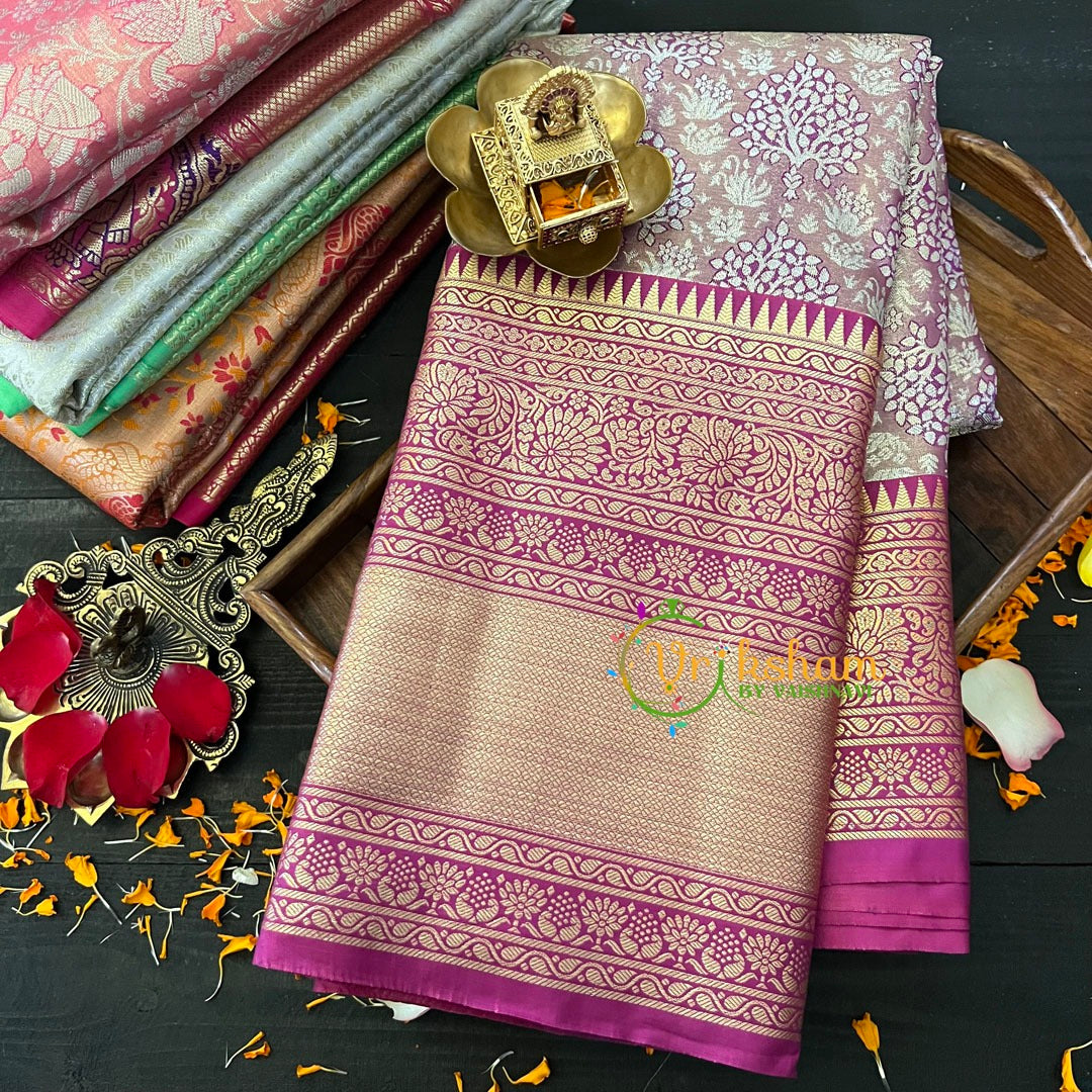 Pastel Pink Silk with Pink Border Saree-Kanchi Silk Saree - Festive wear saree – Pattern throughout the saree; comes with Blouse attached. One side Big Border and other side lean border. Power loomed saree.