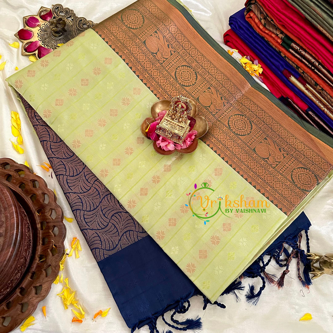 Pista Green Silk Saree -Kanchi Silk – Festive wear saree – Pattern throughout the saree; comes with Blouse attached. Power loomed saree.