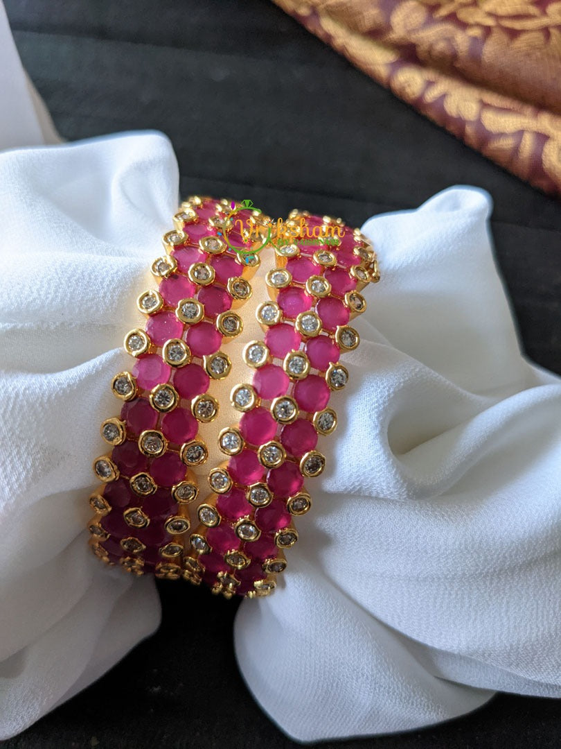 Kemp and AD Stone Bangle Pair -Red Pink, white kemp and AD Stone studded festive bangles , Comes as pair only.