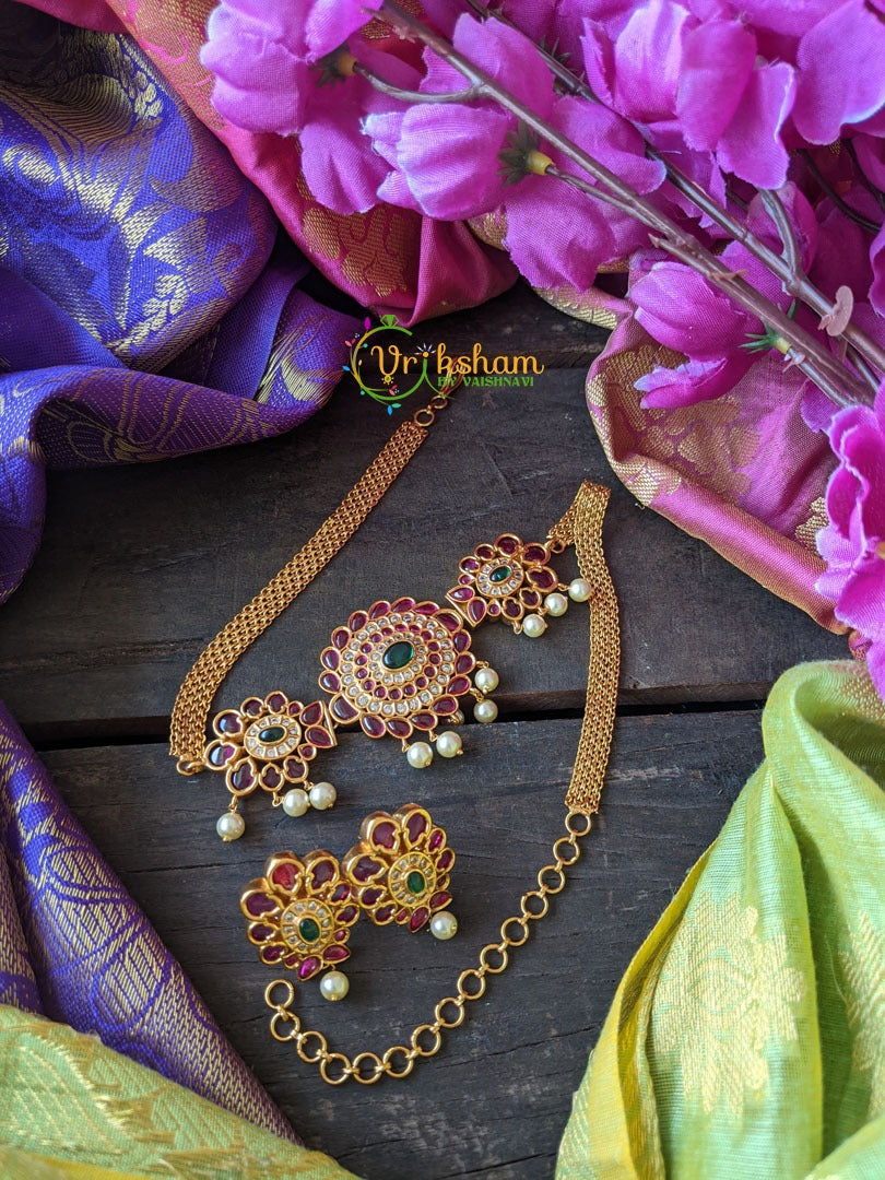 For more such neckpieces please visit, https://vrikshamindia.com/product-category/golden-jewellery/high-neck-choker/