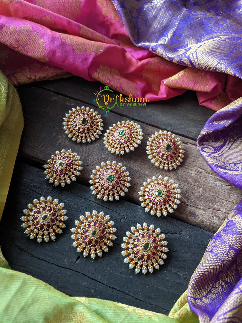 Kemp and AD Stone Jada Billai - 9 billai - kemp and white AD stone studded ,with pearl finish. Doesn't come as individual pieces.