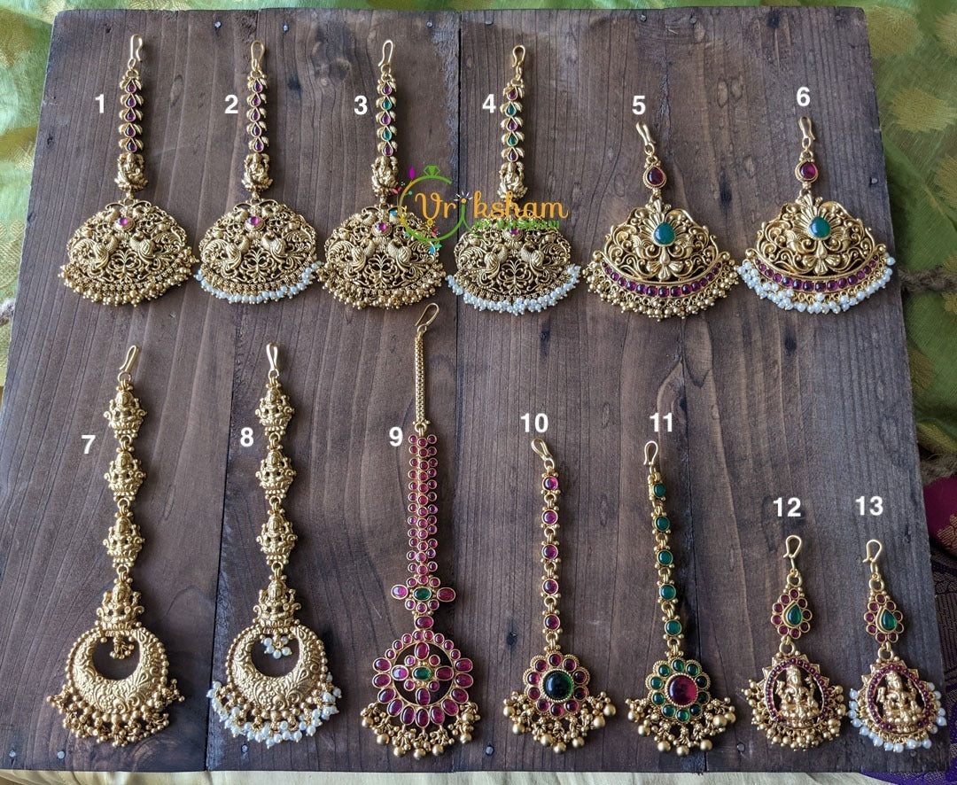 Kemp and Temple Maang Tikka -The most sought after bridal tikkas in all sizes is available now. These are center tikkas which modern brides recently have been preferring more along with their wedding jewelery rather than the double sided tikka/nethi chutis.