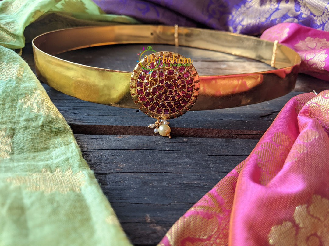 Kemp Annam Plain Hipbelt with red semi precious kemp stones, with pearl drop.