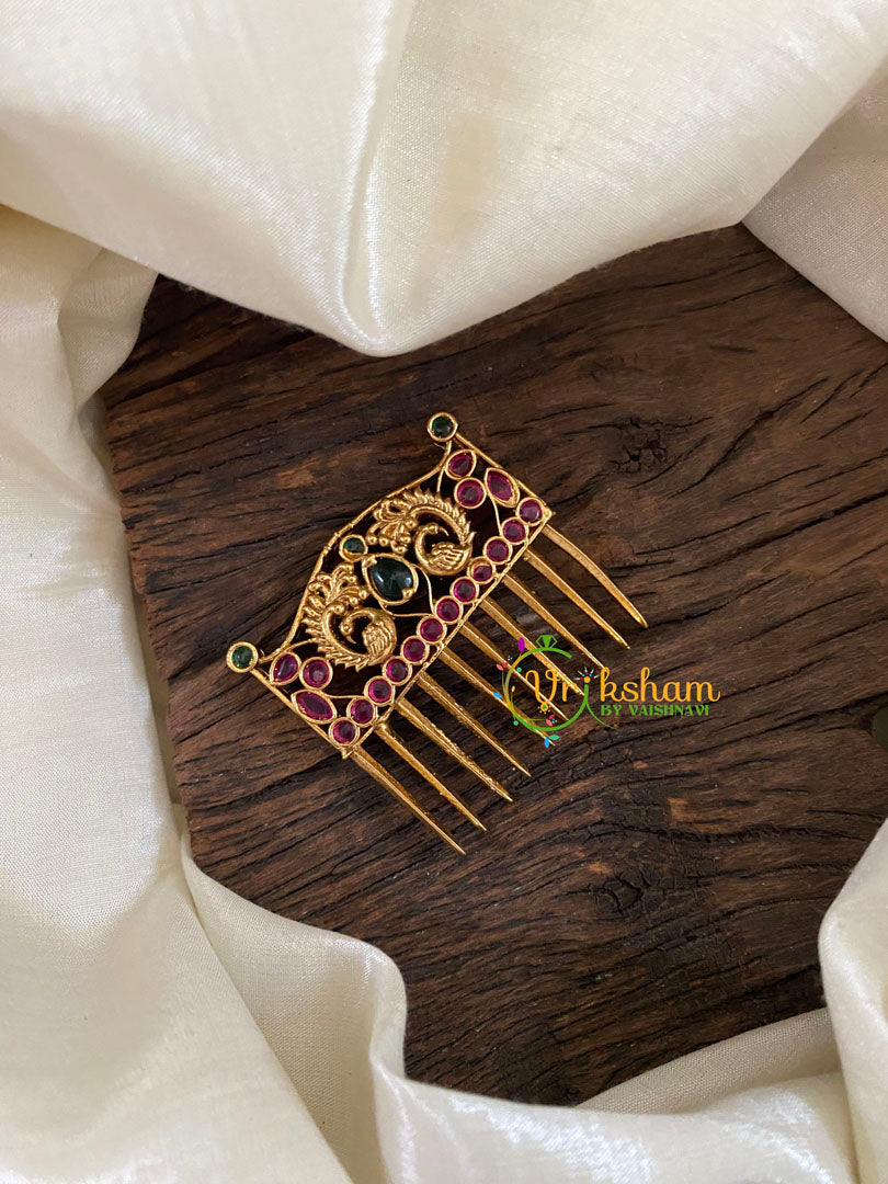 Red Green Kemp Comb Clip Jada Billai -Comb Billai - Bun Billai – Hair Accessory- Red Green imitation kemp stone set single piece billai.
