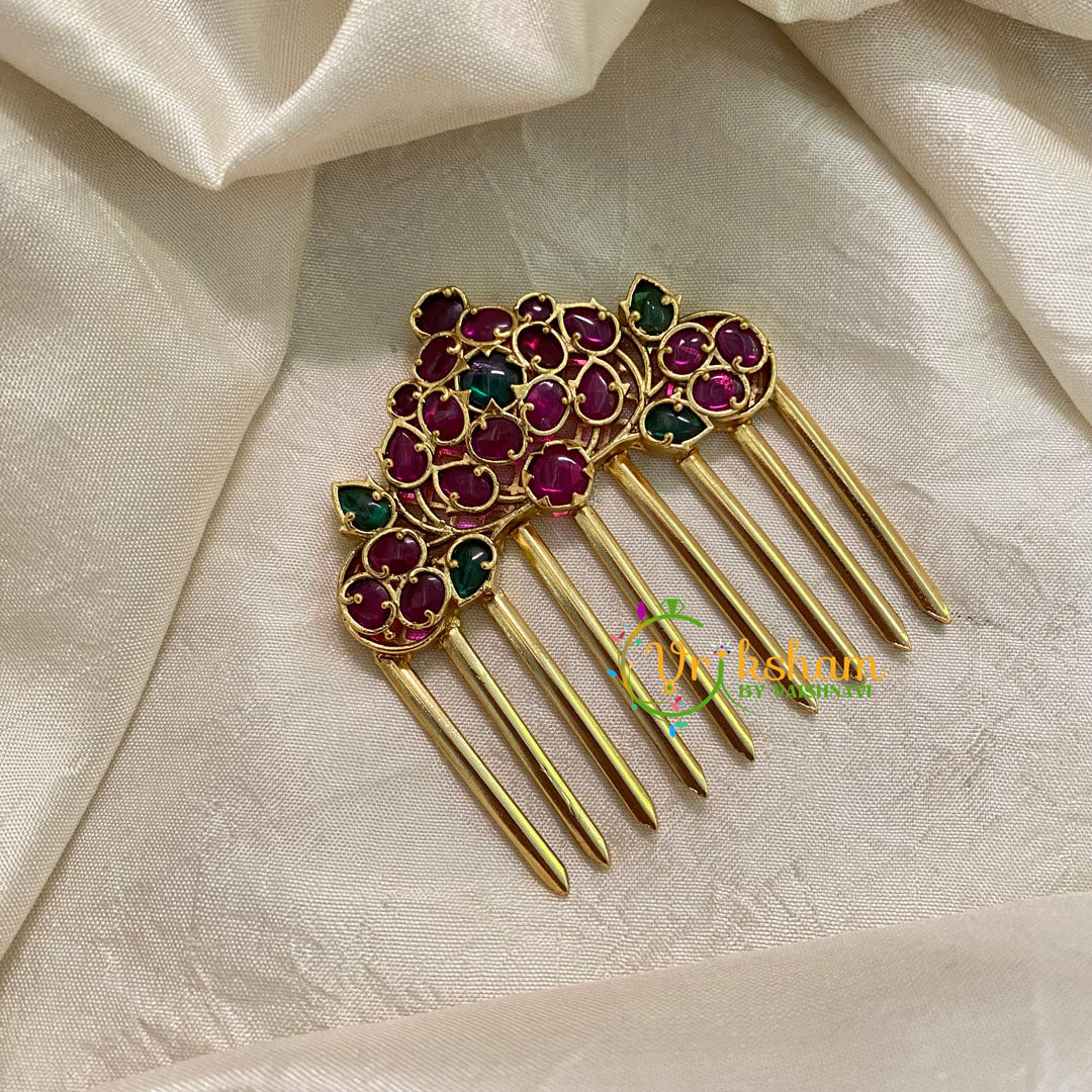 Red Green Kemp Comb Clip Jada Billai -Comb Billai - Bun Billai – Hair Accessory- Red Green imitation kemp stone set single piece billai.