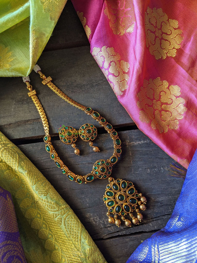 MAKE MATERIAL – This beautiful Kemp Neckpiece with earrings is made of gold look alike finish with Kemp stones
