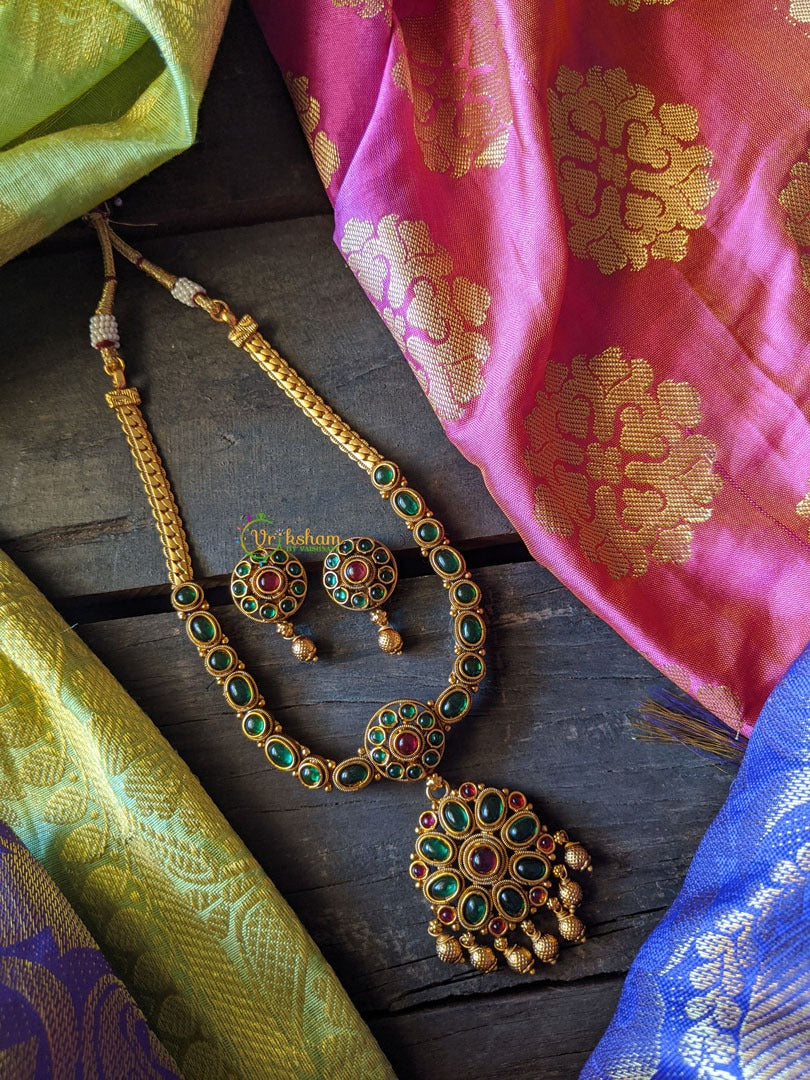 MAKE MATERIAL – This beautiful Kemp Neckpiece with earrings is made of gold look alike finish with Kemp stones