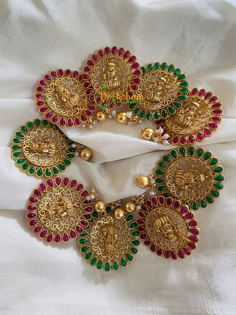 Precious Kemp Lakshmi Temple Jada Billai -9 pieces of same size temple billai - Lakshmi on lotus and gold bead and pearl finish, comes together as 9 pieces only.