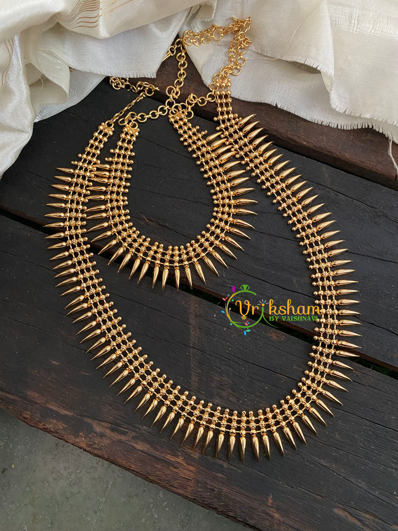 Traditional Kerala Bridal Neckpiece Set-Mullai small-NO Stone Neckpiece- Traditional Kerala jewelry- Light weight short and long neckpiece; NECKPIECE ONLY
