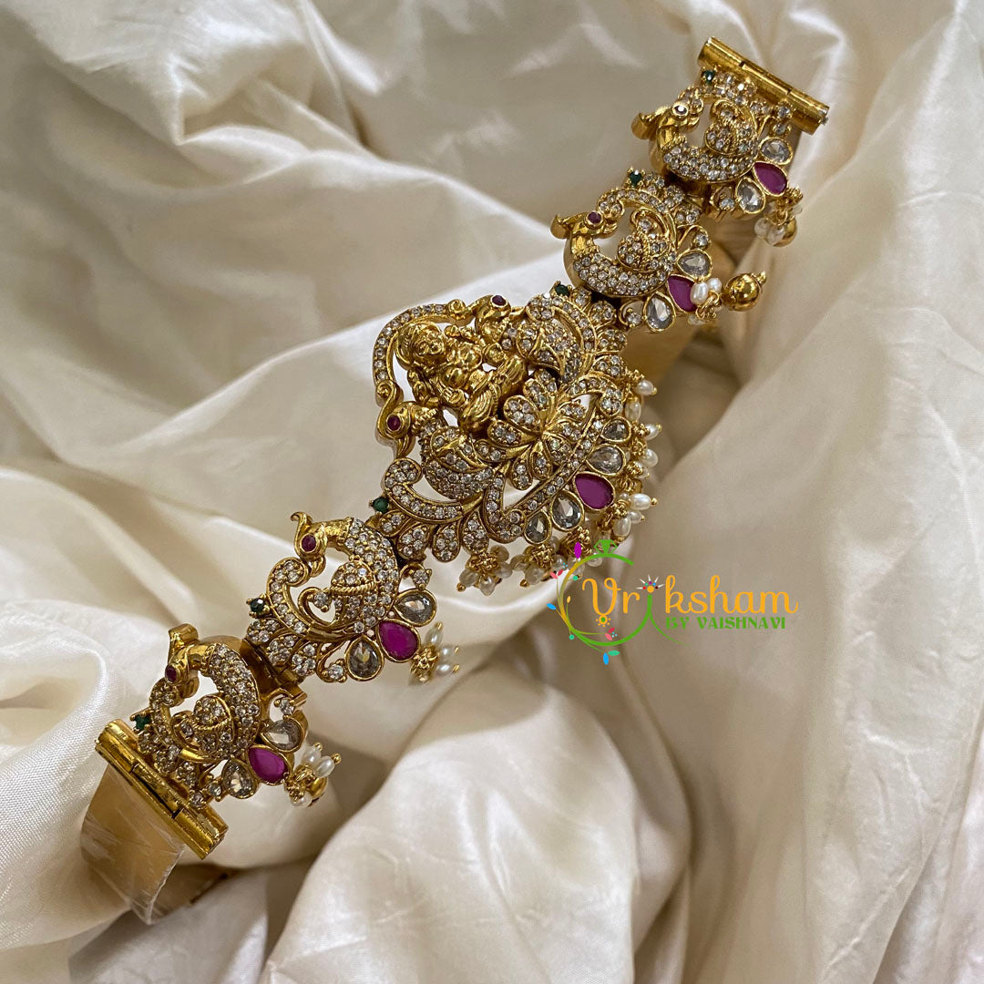Kids Hipbelt -AD Stone Premium quality Lakshmi temple Hipbelt – AD stone studded lakshmi idol hipbelt with golden bead finish -Kid’s size.