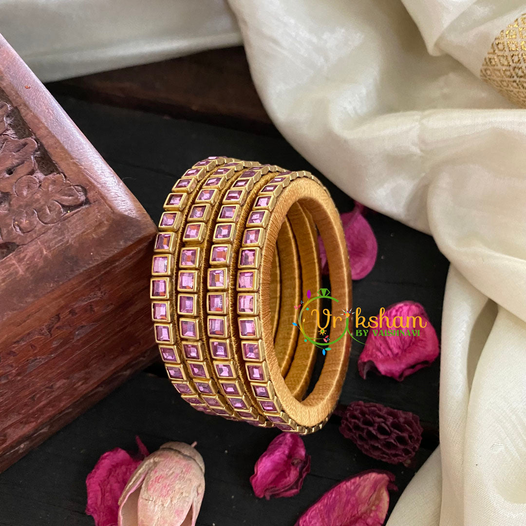 Kids Silk Thread Kundan Bangle-THIN BANGLES - kundan stone festive bangles , Comes as 4 bangles only.