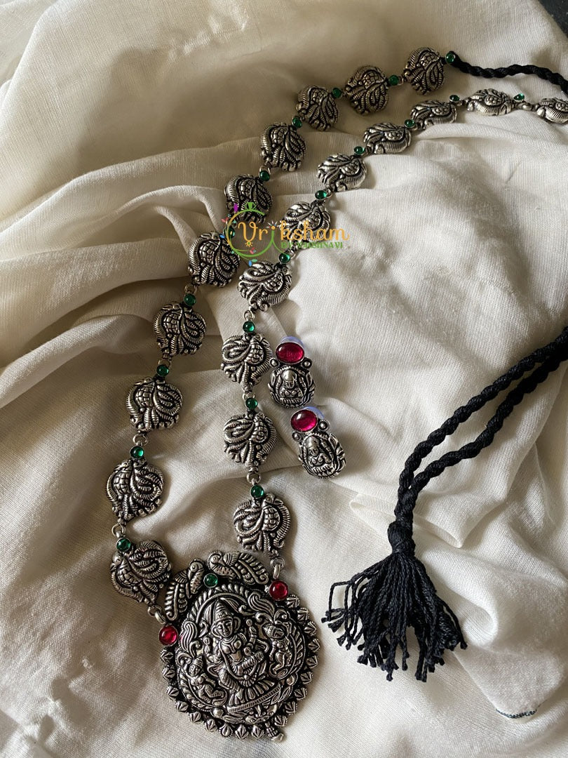 Kolhapuri Goddess Temple Haram; Silver look alike Goddess haram. Comes with a pair of Lakshmi stud.