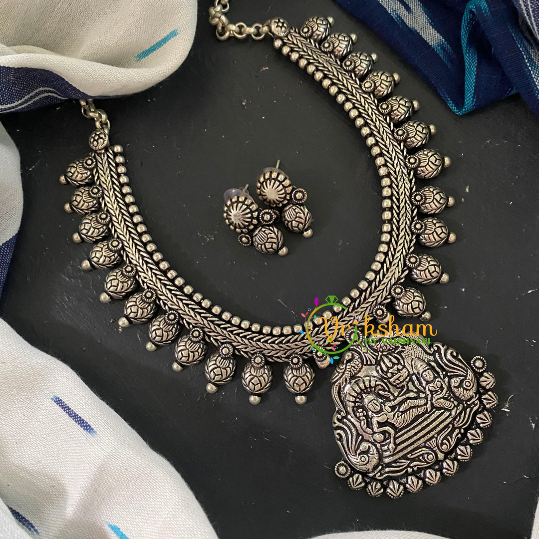 Kolhapuri Temple Neckpiece- Vishnu Lakshmi pendant short neckpiece, comes with studs.