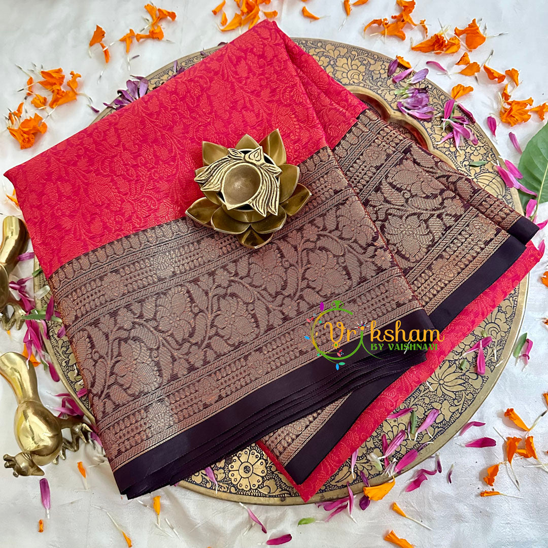 Red with Deep Purple Kora Muslin Saree-VS1709
