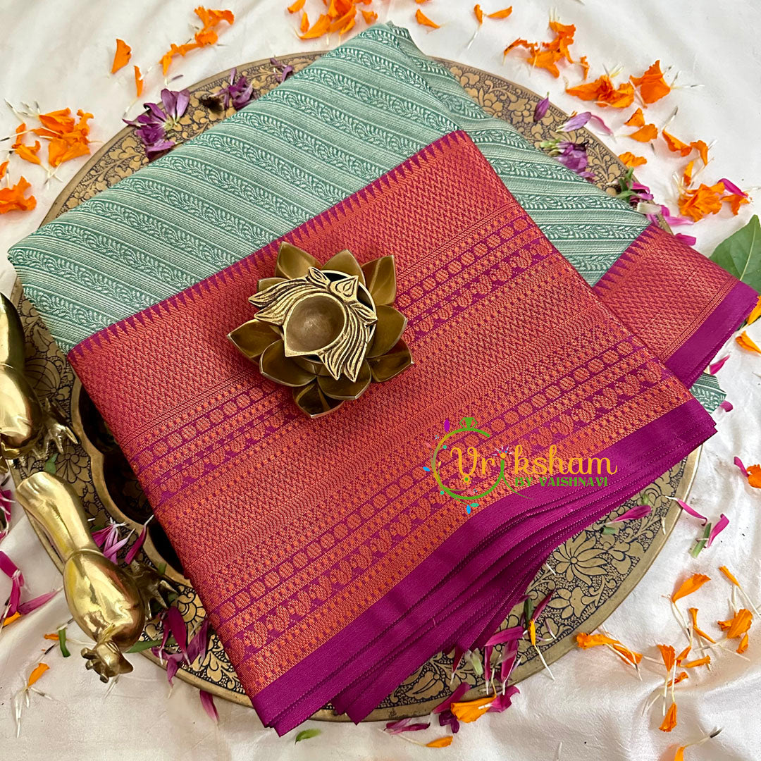 Sage Green with Pink Kora Muslin Saree-VS1711