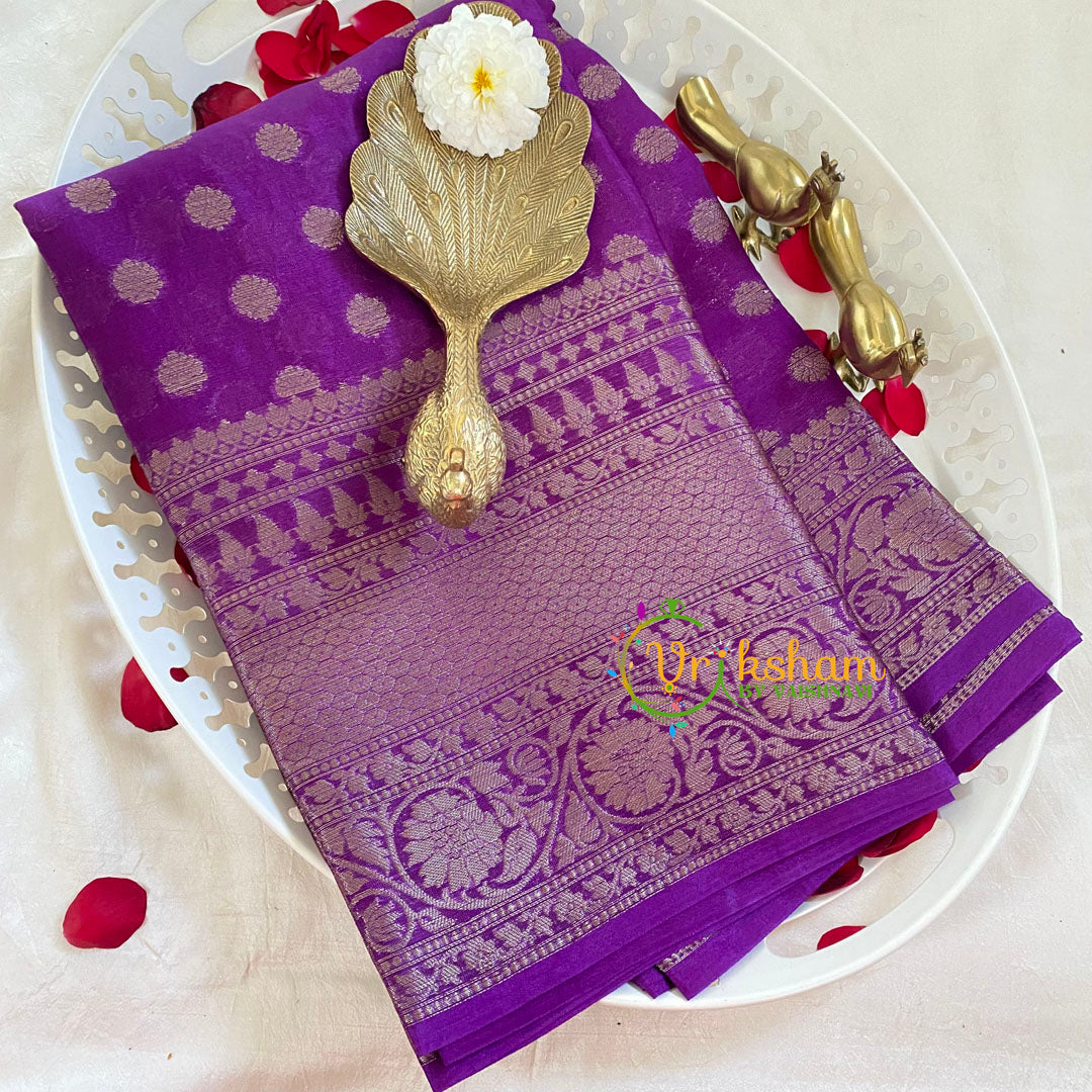 Colour and Material: Violet Kora Organza Soft Silk Saree