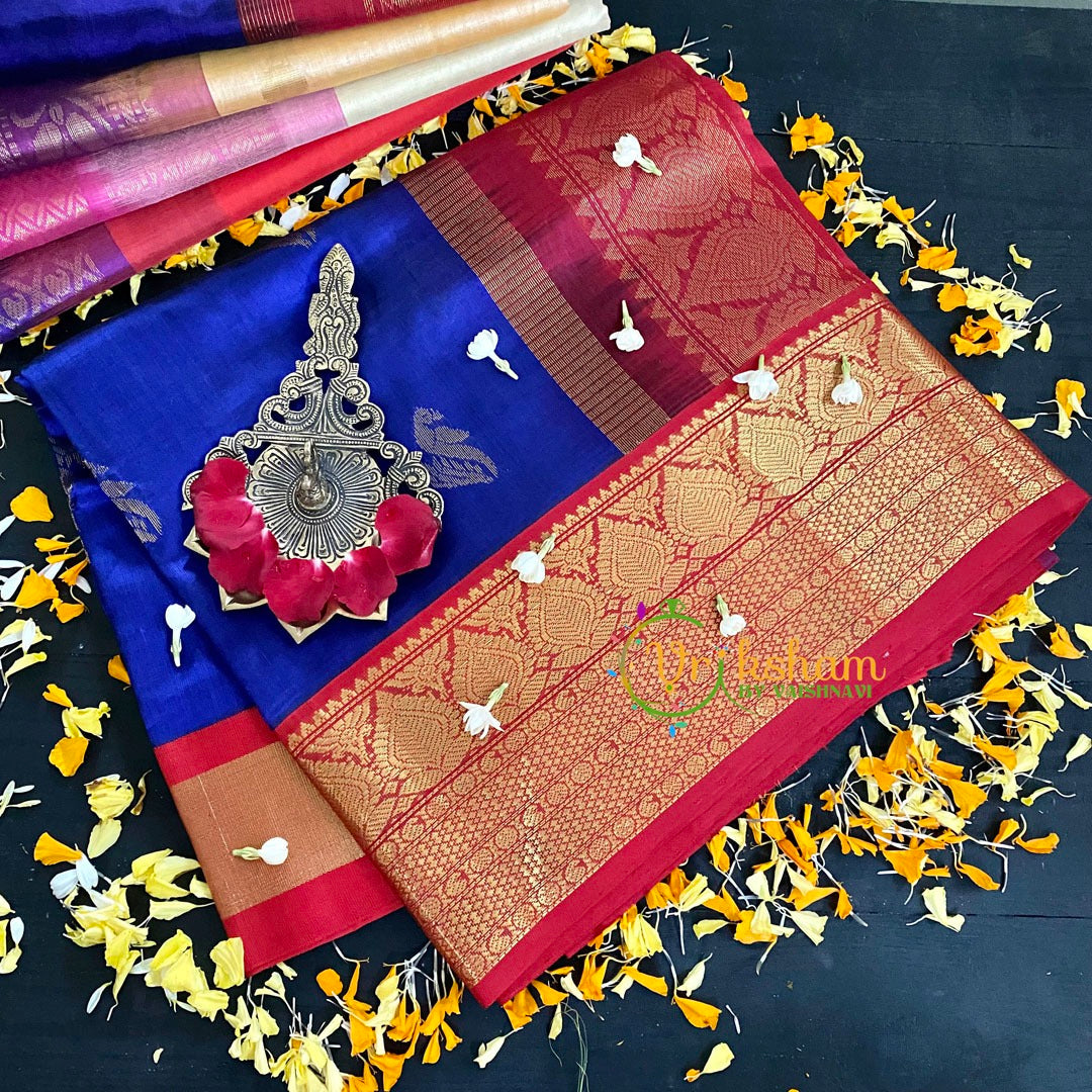 Dark Blue with Red Korvai Handloom Silk Cotton Saree-VS63