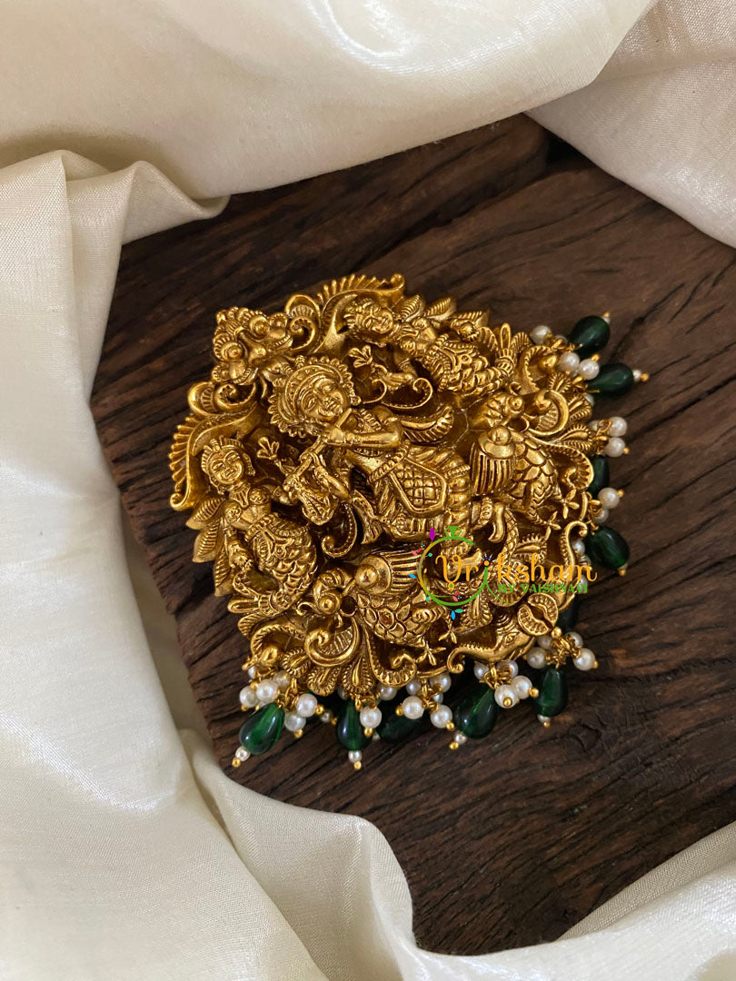 Premium Krishna Single Jada Billai -Temple Bun Billai– Hair Accessory- imitation kemp or Ad stone set single piece billai with pearl and green bead finish.